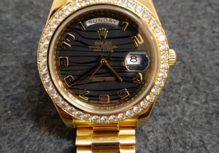 本日はロレックス(ROLEX)のデイデイトII(Day-Date II)です。 41mmの18Kイエローゴールド製に、工場出荷時に セッティングされたダイヤモンドベゼルを備えているのが特徴です。 主な特徴 モデル名: デ […]