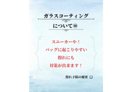 こんにちは。 コーテイング専門店のGLATION新宿歌舞伎町店です。 歌舞伎町から徒歩圏内のアクセスで元気に営業中です。 ガラスコーティングは傷や汚れ、型崩れから保護することができますが、 「擦れ」からもしっかりと守るこ […]